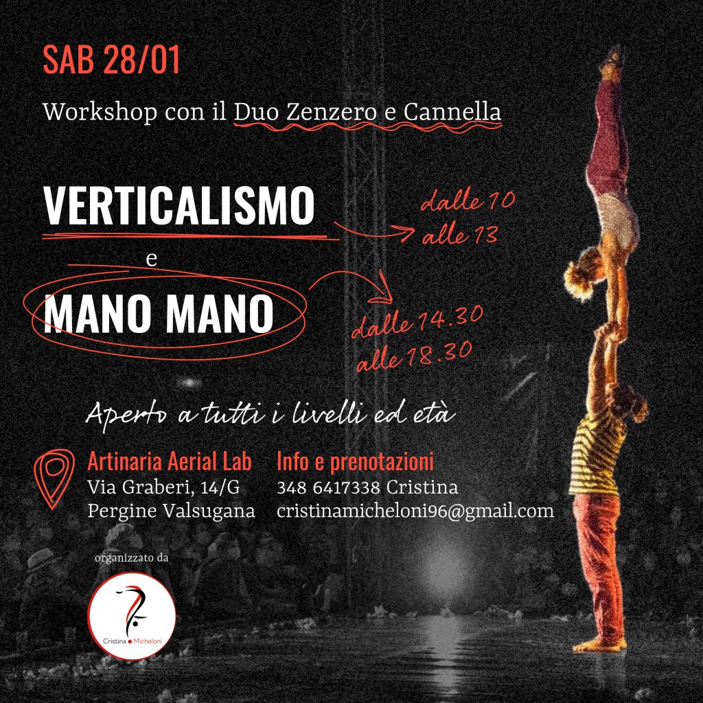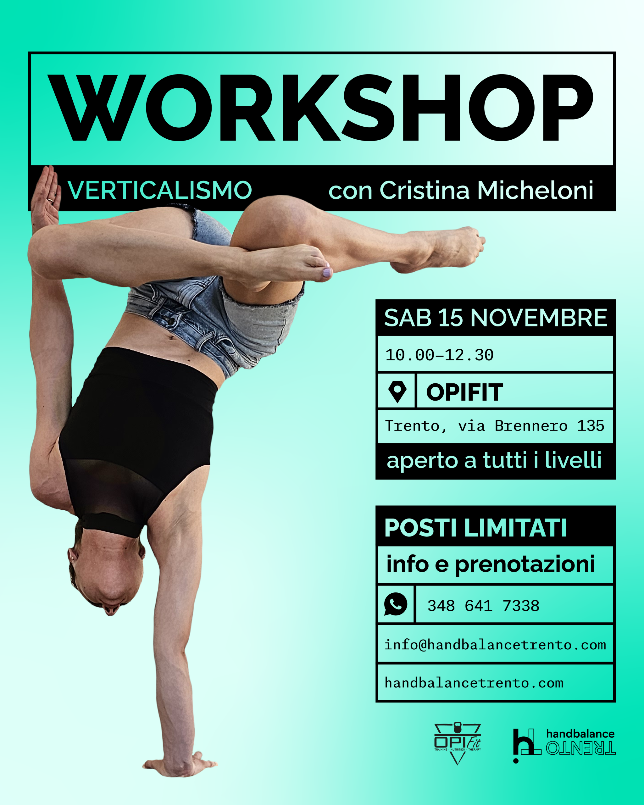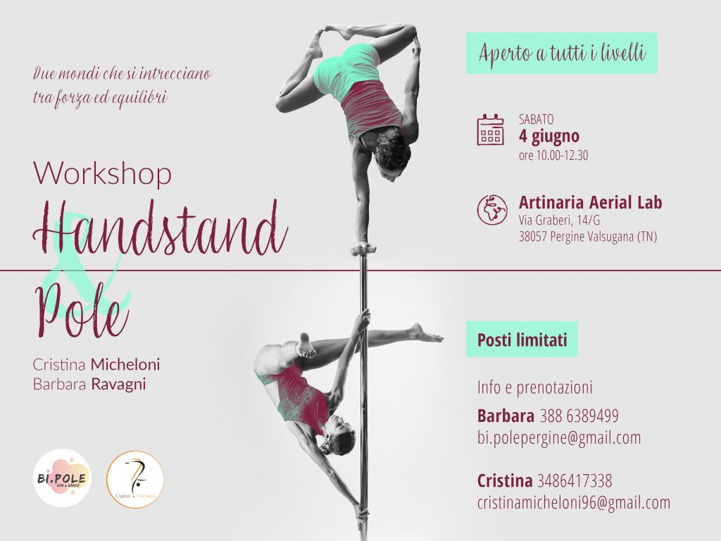 Proponiamo workshop per tutti i livelli, dal primo approccio alla verticale fino alle varianti più avanzate, come one arm e flag.